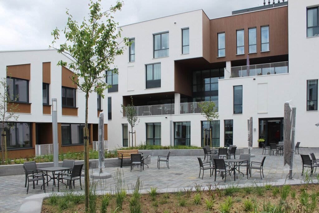 Esses edifícios são projetados com atenção a cada detalhe: rampas, elevadores para maca, corredores largos, quartos ergonômicos com sensores de presença e botões de emergência, banheiros acessíveis, iluminação segura, sinalização legível e abundância de luz natural.